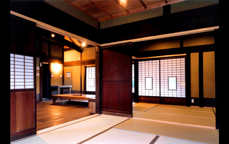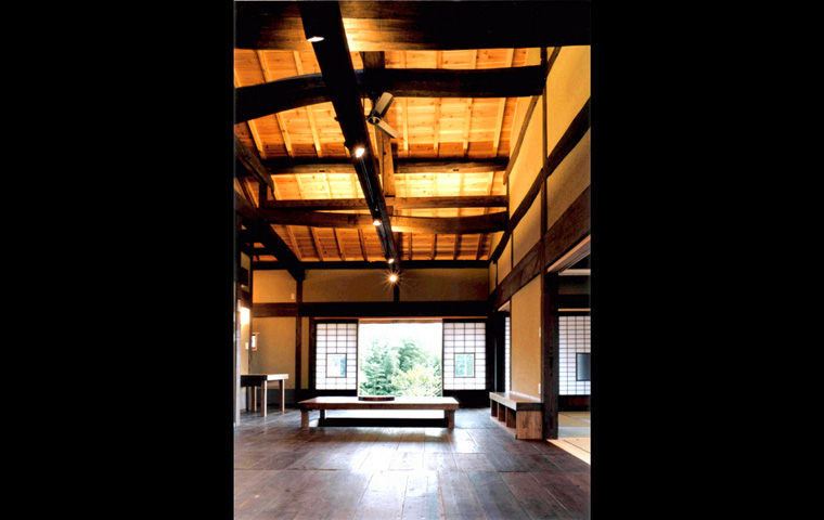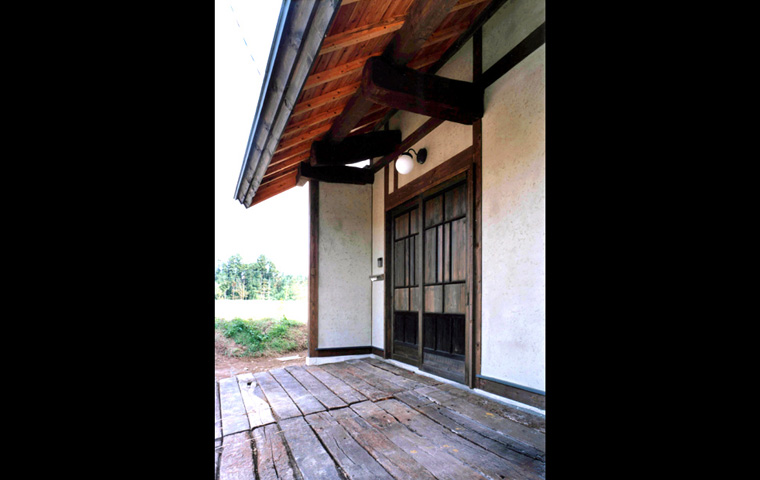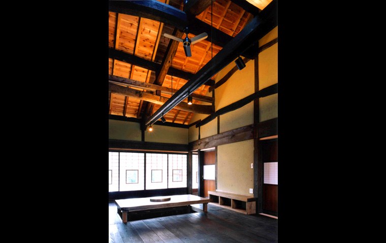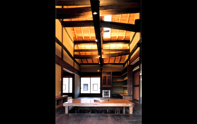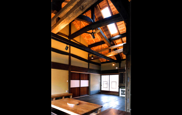 I邸は、長野県青木村から解体移築再生したものである。移築のための古民家としては、2つの大きなメリットが残されていた。養蚕農家であった建物には2階があり、優良な床材が多く、また建具はその多くが、創建当初のまま残されていたことである。柱や梁の寸法や材は、当時の平均的なものであるが、規模が大きかったことにより、残された良いところを選択的に活かすことができた。