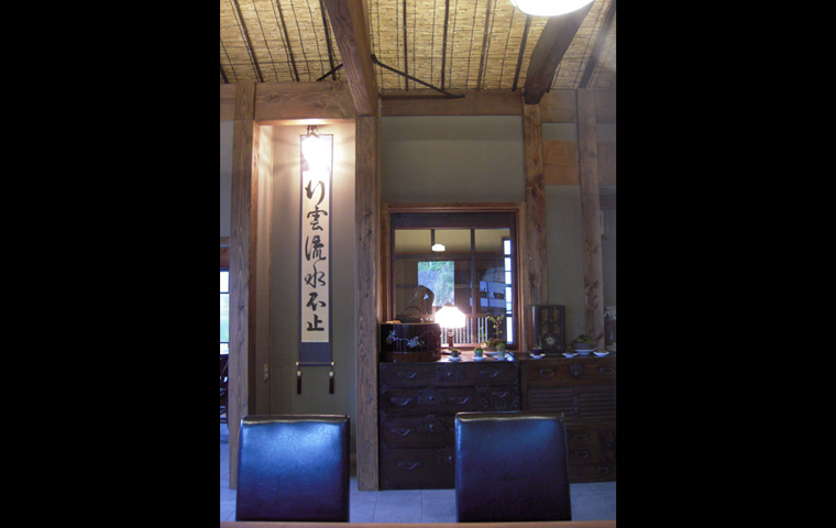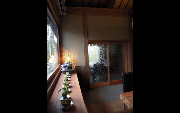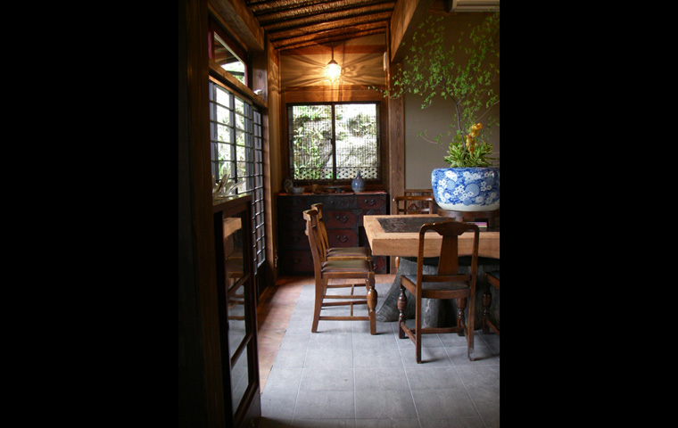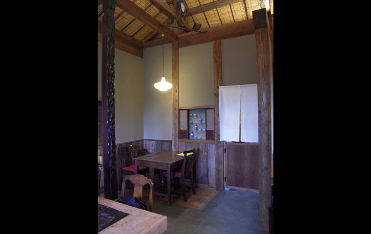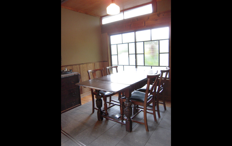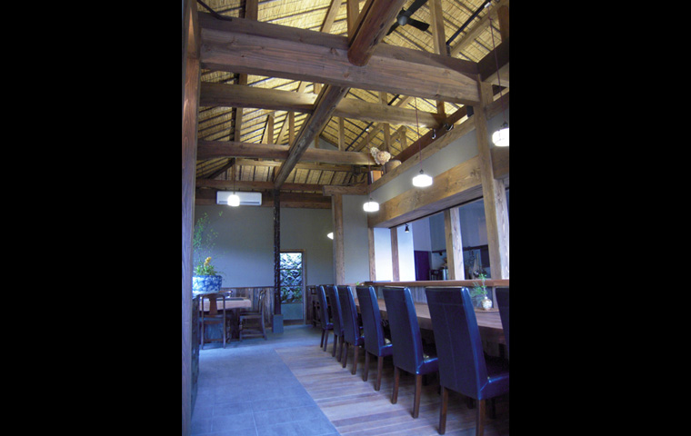 戦後の昭和の在来工法による建築である。別荘建築でありながら、普通の住宅の日常的な造りが、レストランへの改築を考えた場合の障害になると判断した。外観的には、むくりのある瓦屋根の破風は、重く暗い印象か、重厚かの微妙なものがあり、それにどう対処するかは予算的な制約もあり大きなテーマであった。