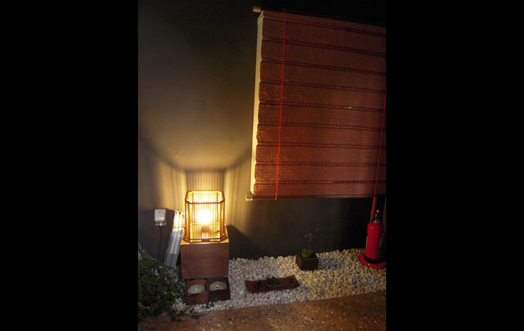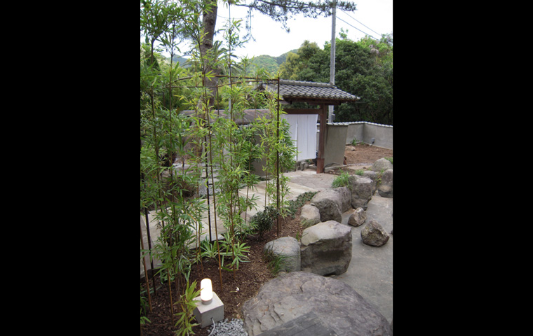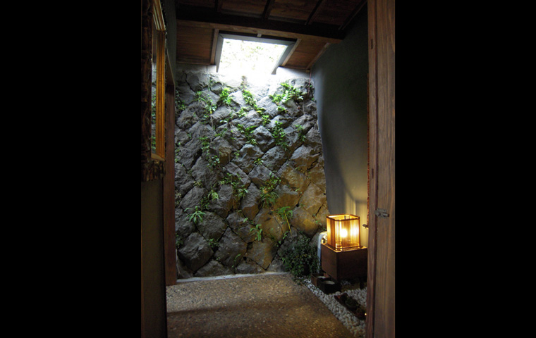町立の大噴湯の整備公開に併せて計画された。同じ河津町の、ペット同伴ホテル「四季の蔵」の和食処別邸、として。比較的大きな庭池を持ち、背後に小高い山を背負っている。