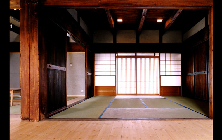 築100年の古民家の現地再生。建物は、江戸時代以来の「玉石基礎」である。床面が、不等沈下を起こし、最大で21cmのレベル差が出来ていた。昭和時代によく見られた合板やガラス戸などへの内外装の変更が見られ、古民家本来の良さを取り戻しながら、床レベルの補正や柱梁の水平、垂直を是正し、なおかつ現代の生活に便利なようにというのが、今回の改修計画の趣旨だ。