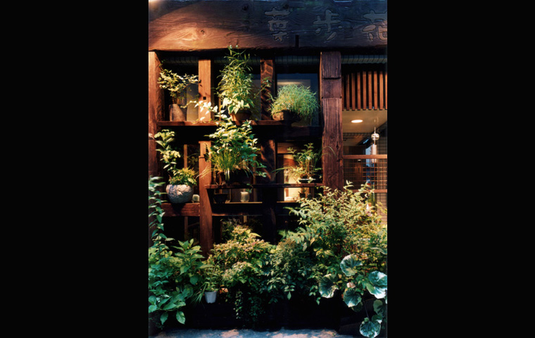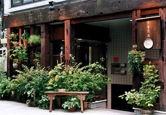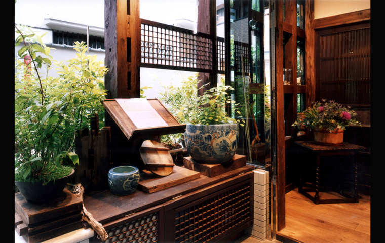 葉歩花庭(はぶかてい)は、羽深亭への当て字である。オーナーシェフの奥様が、生け花(草花から樹木まで、切り花ではなく鉢物の状態で構成してゆく)で、大胆で繊細な御店の空間創りをされている。この葉歩花庭は、葉歩花庭としては2軒目である。1軒目は、やはり私の設計によるものであるが、3年目に、入居しているビルの建て替えに遭遇して、神楽坂のこの地に移転、新装することになったのである。