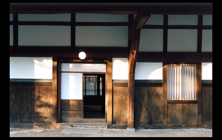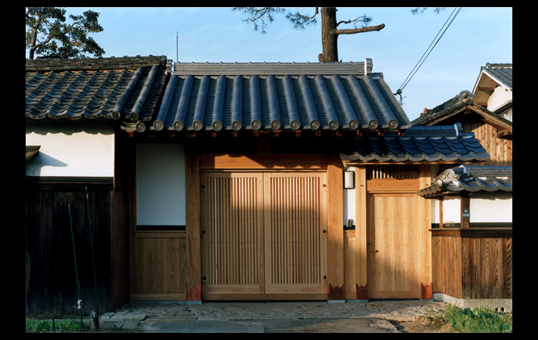 大阪河内平野の代表的な古民家である。約600坪の土塀で囲まれた境域に母屋、蔵2棟、離れ、和室などを備えた倉庫2棟に、四つ足門で構成されている。母屋では、和室などの天井は高く、3m以上ある。柱や梁は、標準より少し太めの、全体としてはどっしりとした堂々とした風情を表現できる寸法となっている。基礎の不等沈下が激しく、最大200mmのレベル差が見られ、ジャッキアップによる床面のレベル調整に1ヶ月を要した。