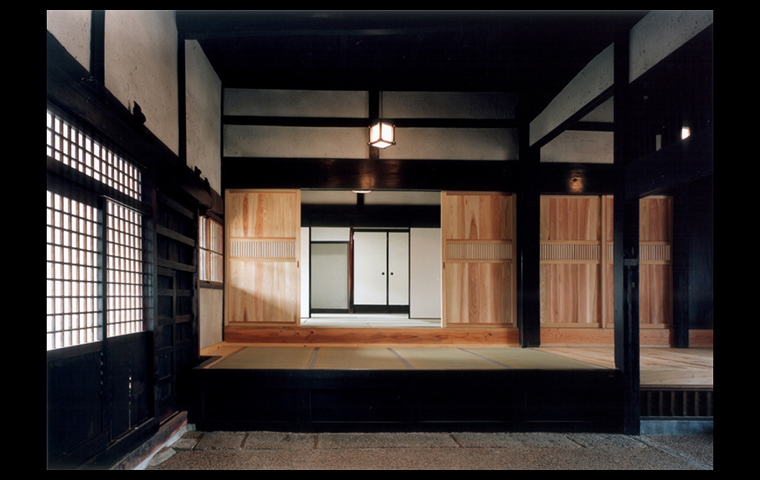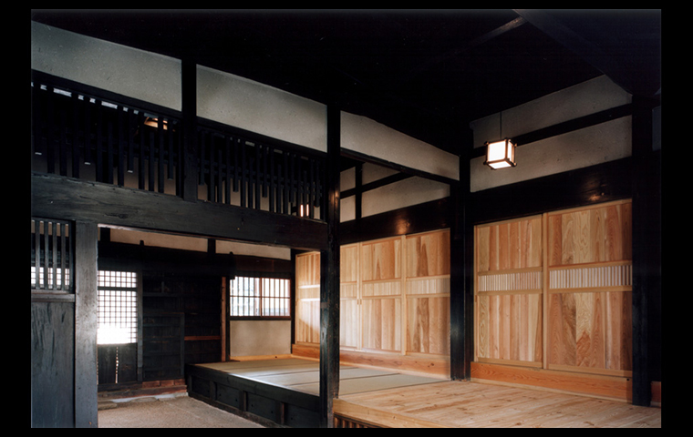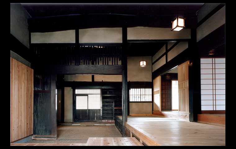 平面計画を考えた場合の改築は、原則として復元であるが、土間とそれ以西の田の字プランの箇所を復元を主とし、東側に生活の場としての増改築箇所を設定した。土間の左右で、空間構成は大きく異なっている。今回の改築工事は、母屋のみならず、蔵の改修、倉庫の補修、門の建て替えなどを含み、今後100年の改修計画を見据えた、大きなステップと言うことができる。門は、ケヤキやスギなどの新材を用いた大掛かりな作り替えとなった。